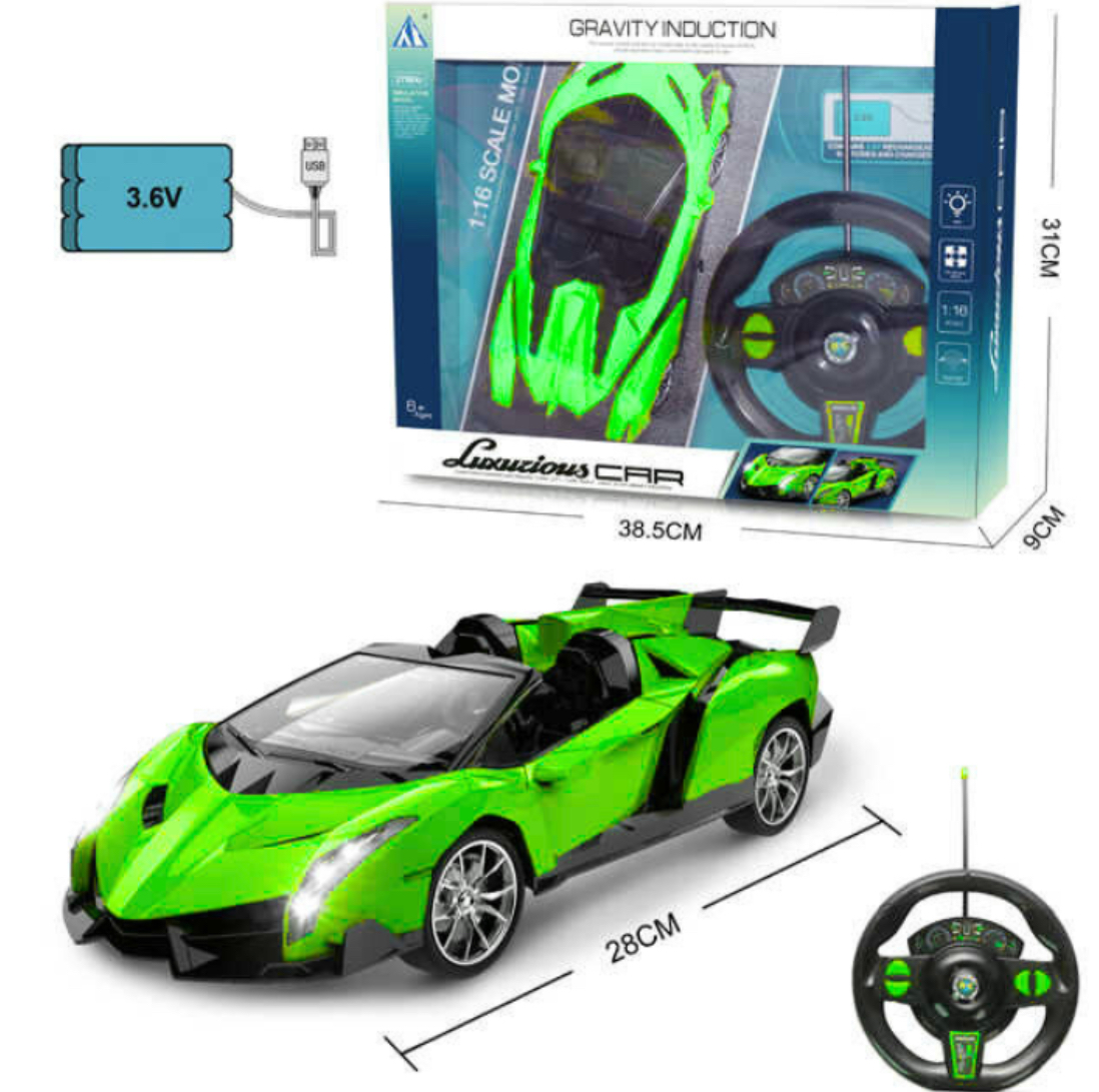 طراحان فرم کلاسیک لامبورگینی را در مقیاس RC بازسازی کردهاند: خطوط عضلانی، کاپوت برجسته و عقب اسپرت. رنگ سبز متالیک جلوهٔ نمایشی ایجاد میکند و وقتی ماشین را در پیست یا نمایش قرار میدهید، نگاهها را جذب میکند.