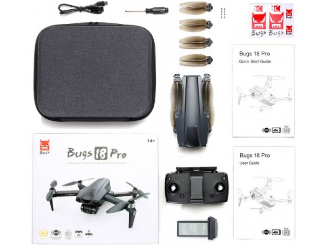 کوادکوپتر BUGS 18 PRO ترکیبی از دوربین 4K با گیمبال سه‌محوره، انتقال تصویر FHD با تأخیر پایین، سیستم موقعیت‌یابی GPS و حسگرهای اجتناب از موانع را ارائه می‌دهد.