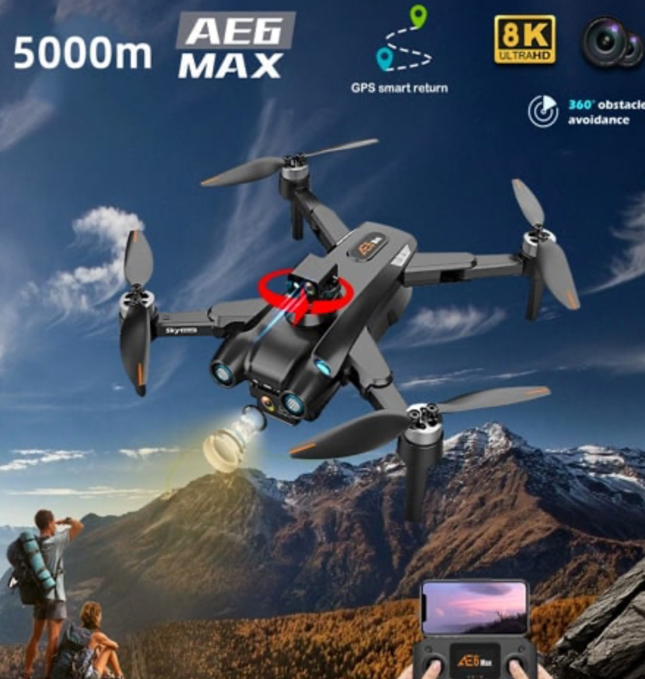 AE6 MAX حالتهایی مثل دنبالکردن سوژه (Follow Me)، پرواز مسیر-محور (Waypoints) و بازگشت خودکار (RTH) ارائه میدهد. رابط کنترل ساده و دسترسی به گزینهها سریع است. این حالتها کار ضبط را برای شما بسیار آسان میکنند و شما روی خلق محتوا تمرکز میکنید، نه تنظیمات پیچیده.