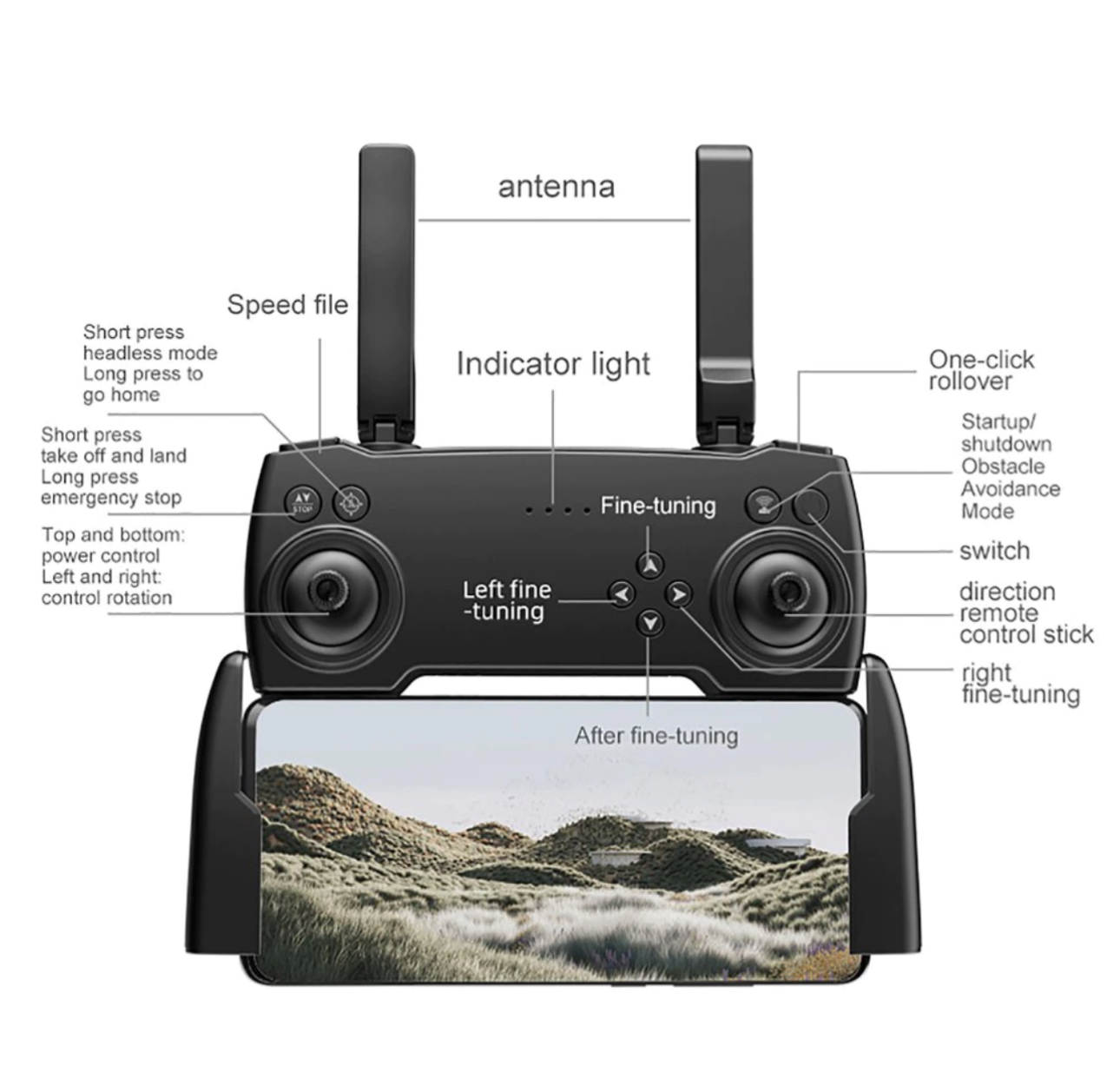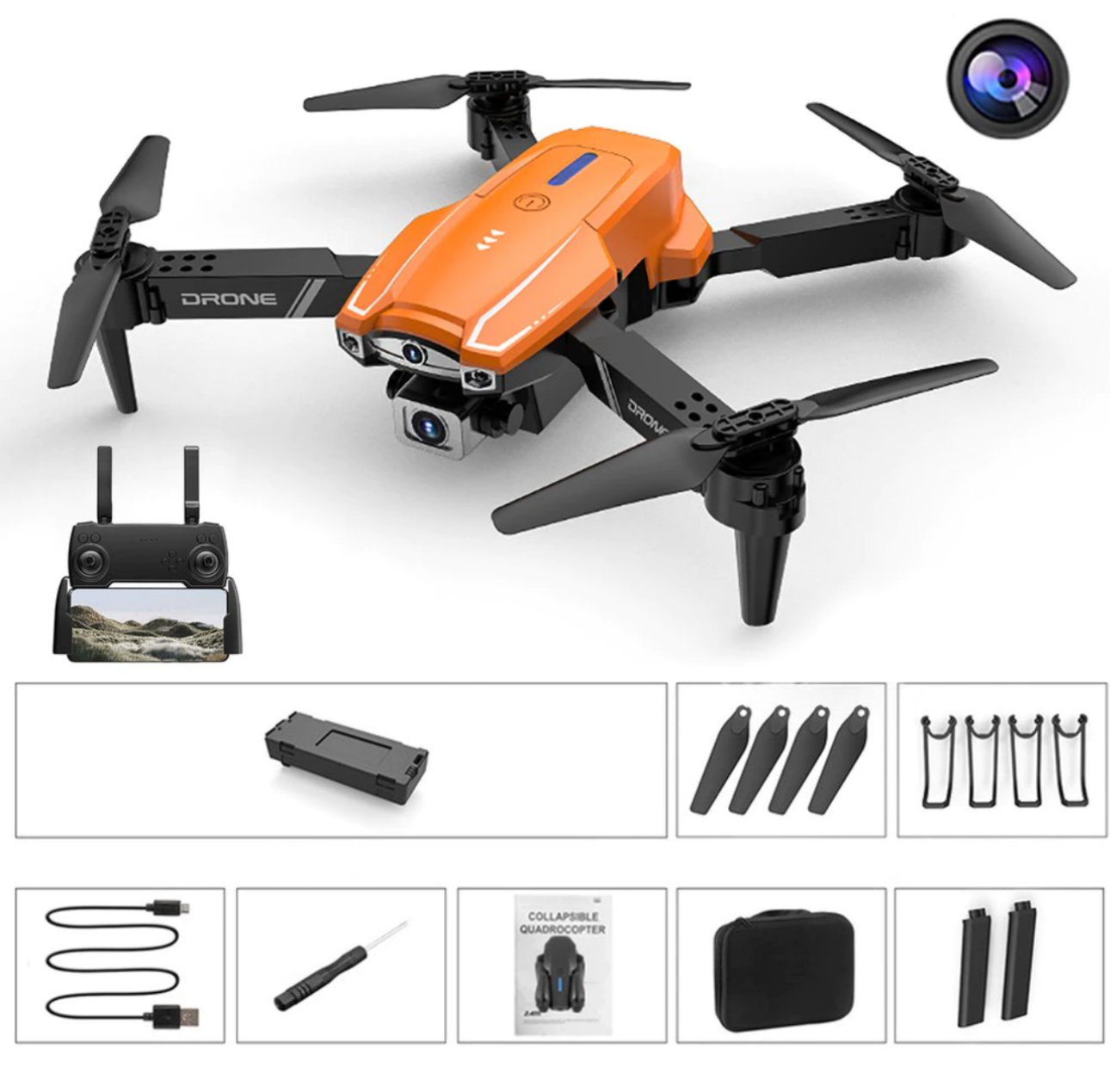 این پهپاد مجهز به دوربین HD، حفظ ارتفاع خودکار، حرکات نمایشی 360 درجه و سیستم بازگشت خودکار است.
