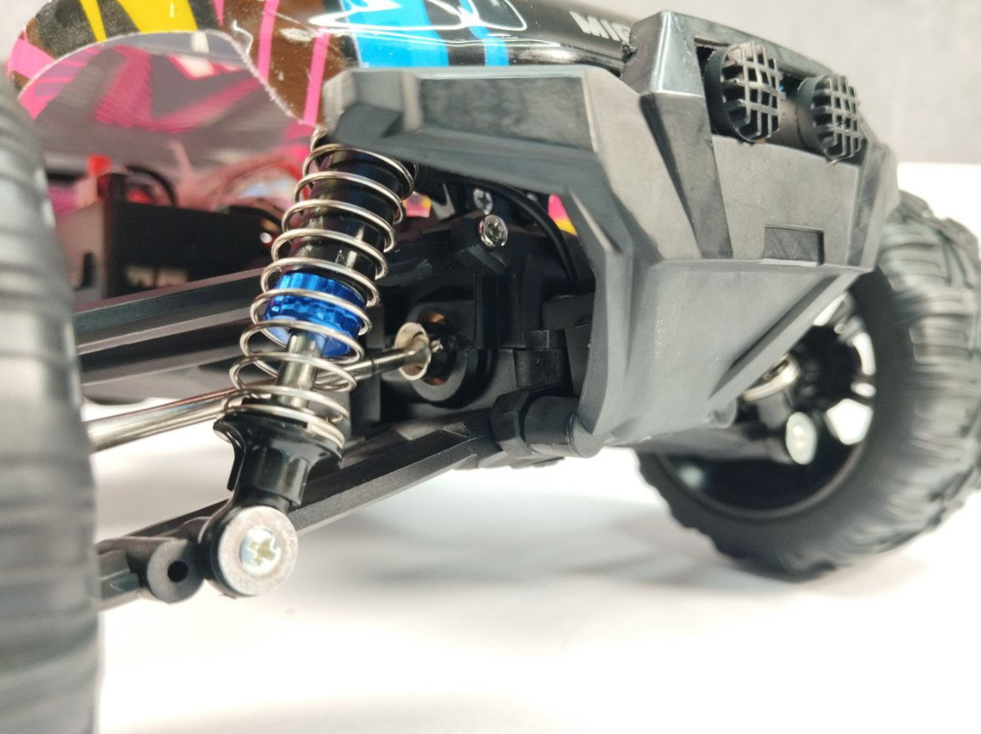 هر چرخ بهصورت مستقل حرکت میکند و کمکفنرها ضربهها را تا حد زیادی جذب میکنند؛ نتیجه این که حرکت ماشین در زمینهای ناهموار نرم و کنترلشده باقی میماند. کاربر در هنگام عبور از سنگها و ریشه درختان، تمرکز و مانور بیشتری روی فرمان تجربه میکند و لذت رانندگی واقعی افزایش مییابد.