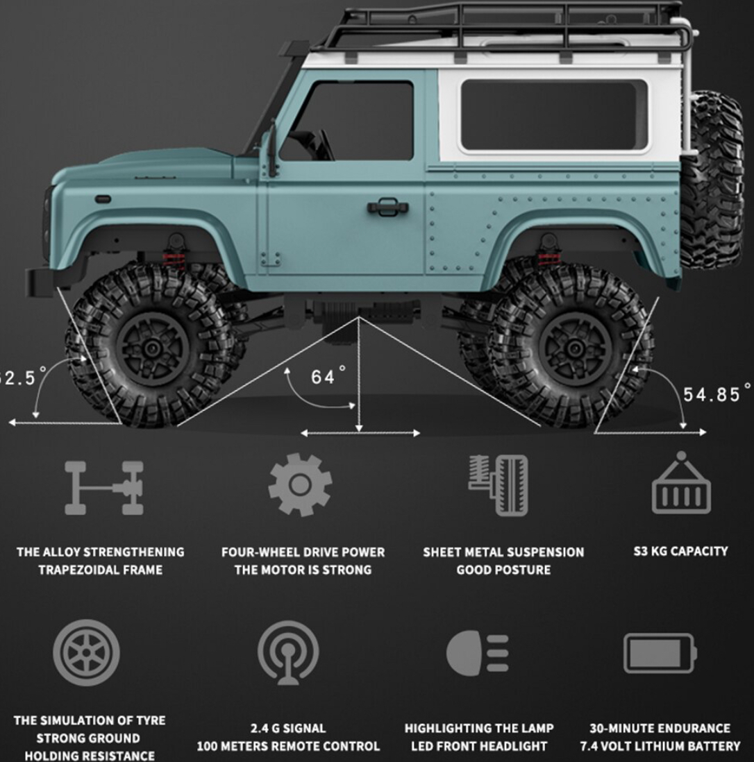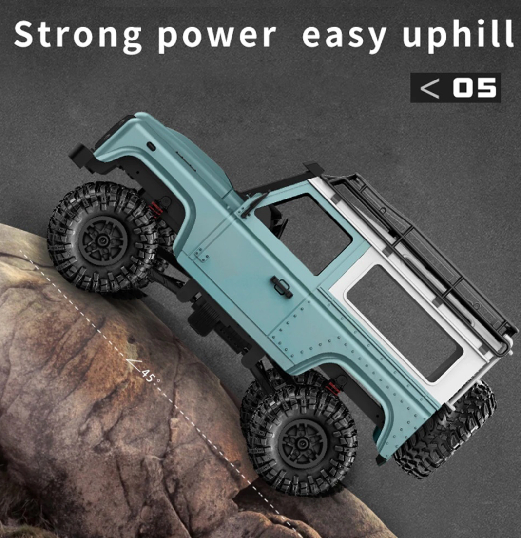 ماشین Rock Crawler سبز دارای سیستم تعلیق حرفهای است که عبور از موانع مختلف را ممکن میسازد. این ویژگی باعث عملکرد بینقص ماشین در مسیرهای ناهموار و سنگلاخ میشود.